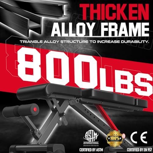 - Weight Capacity: Up to 800 LBs - The adjustable weight bench is designed with a unique frame in a triangular structure and made of heavy-duty commercial quality steel. With it being 800lbs, the weight capacity gives you a safe fitness experience without any no worry of instability.